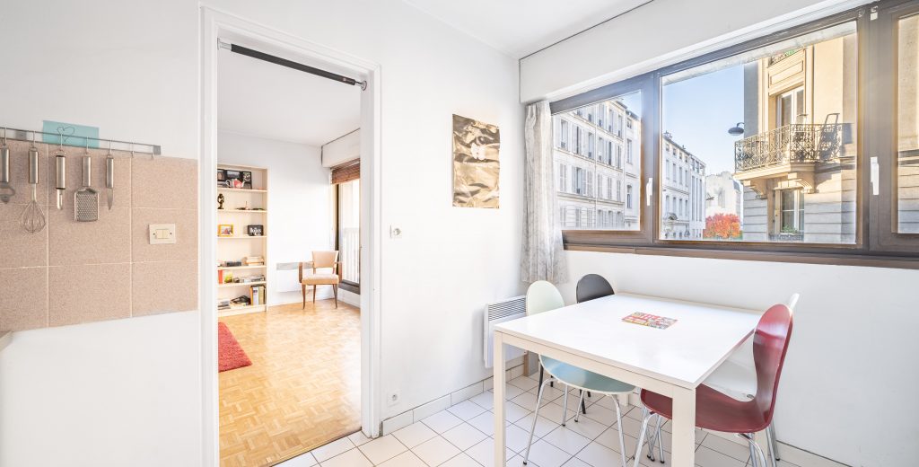 PERNETY, PROCHE MONTPARNASSE: dans un immeuble parfaitement entretenu avec ascenseur, appartement + parking, agencé en 2 pièces principales (possibilité de créer une 2ème chambre), situé au 1er étage sans vis-à-vis (rue et parc en prolongement), éclairé par de grandes baies vitrées dans chaque pièces, à 2 pas des commerces de la rue Raymond Losserand, et du métro Pernety. Travaux à prévoir dans l’appartement, aucun travaux dans la copropriété. Calme et lumineux.