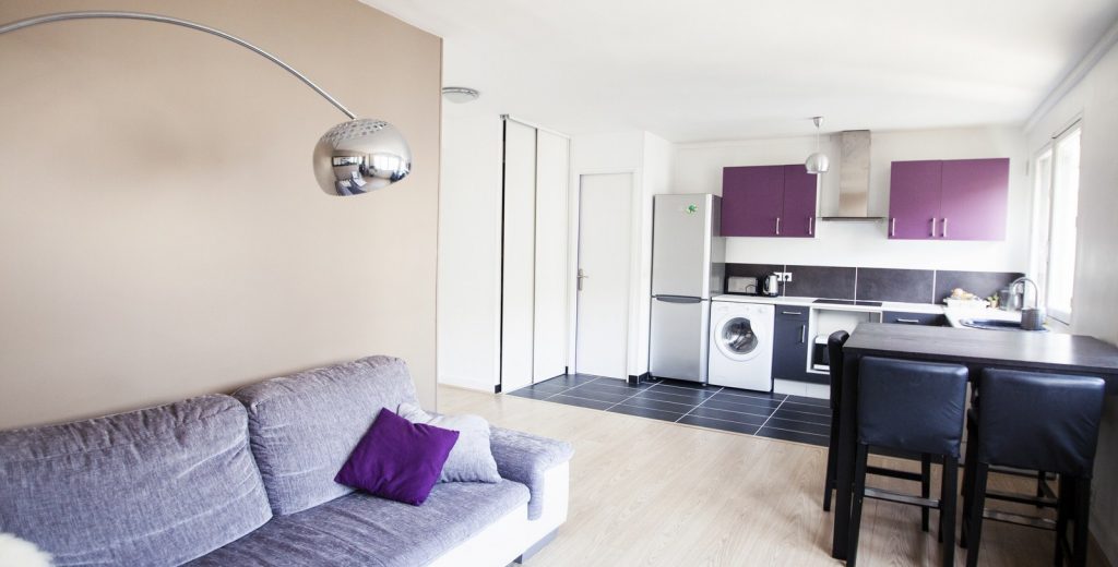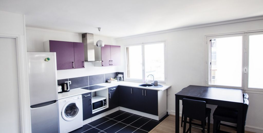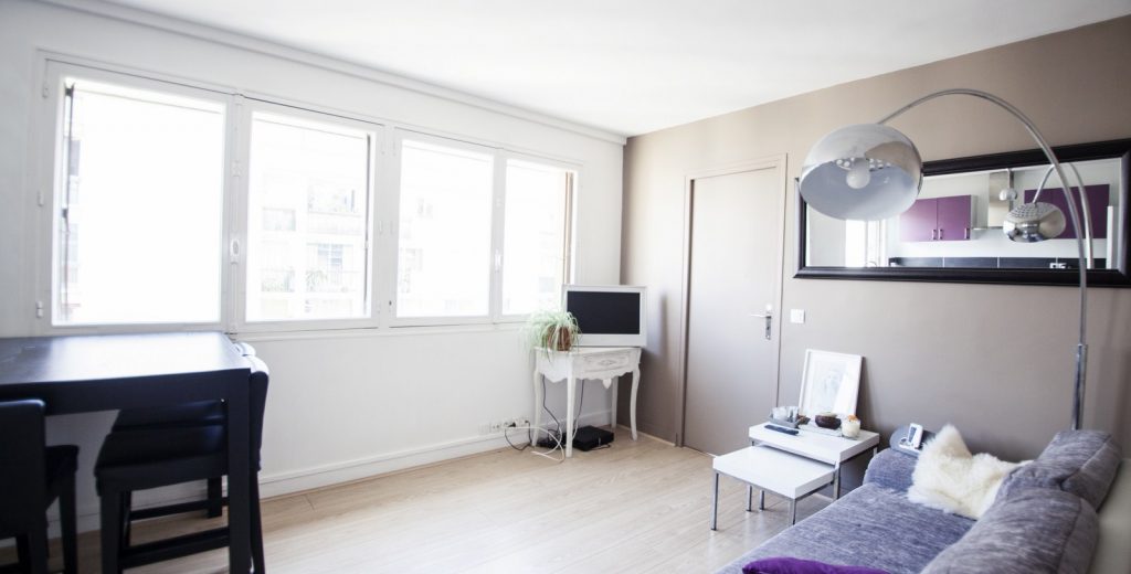 Paris 11, Métro Rue des Boulets, au 6ème et dernier étage d’un immeuble des années 1960, calme et très lumineux, appartement 2 pièces de 40 m2 en parfait état, beau séjour avec cuisine US de 27m2, une chambre avec rangements, salle-de-bains avec baignoire d’angle, wc séparés. L’appartement donne sur une impasse très calme. Chauffage et eau chaude collectifs. Une cave de 3 m2. Proche Nation.