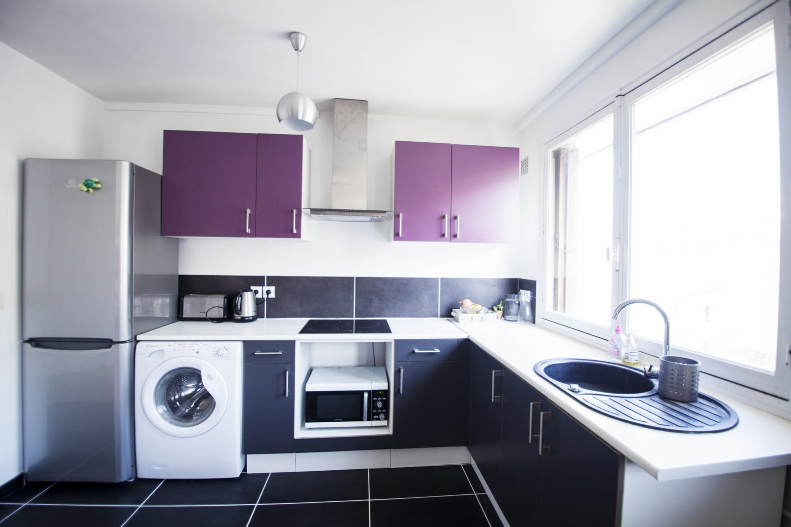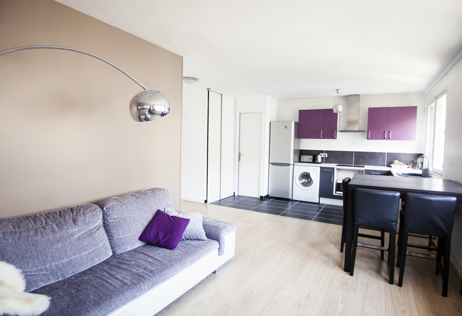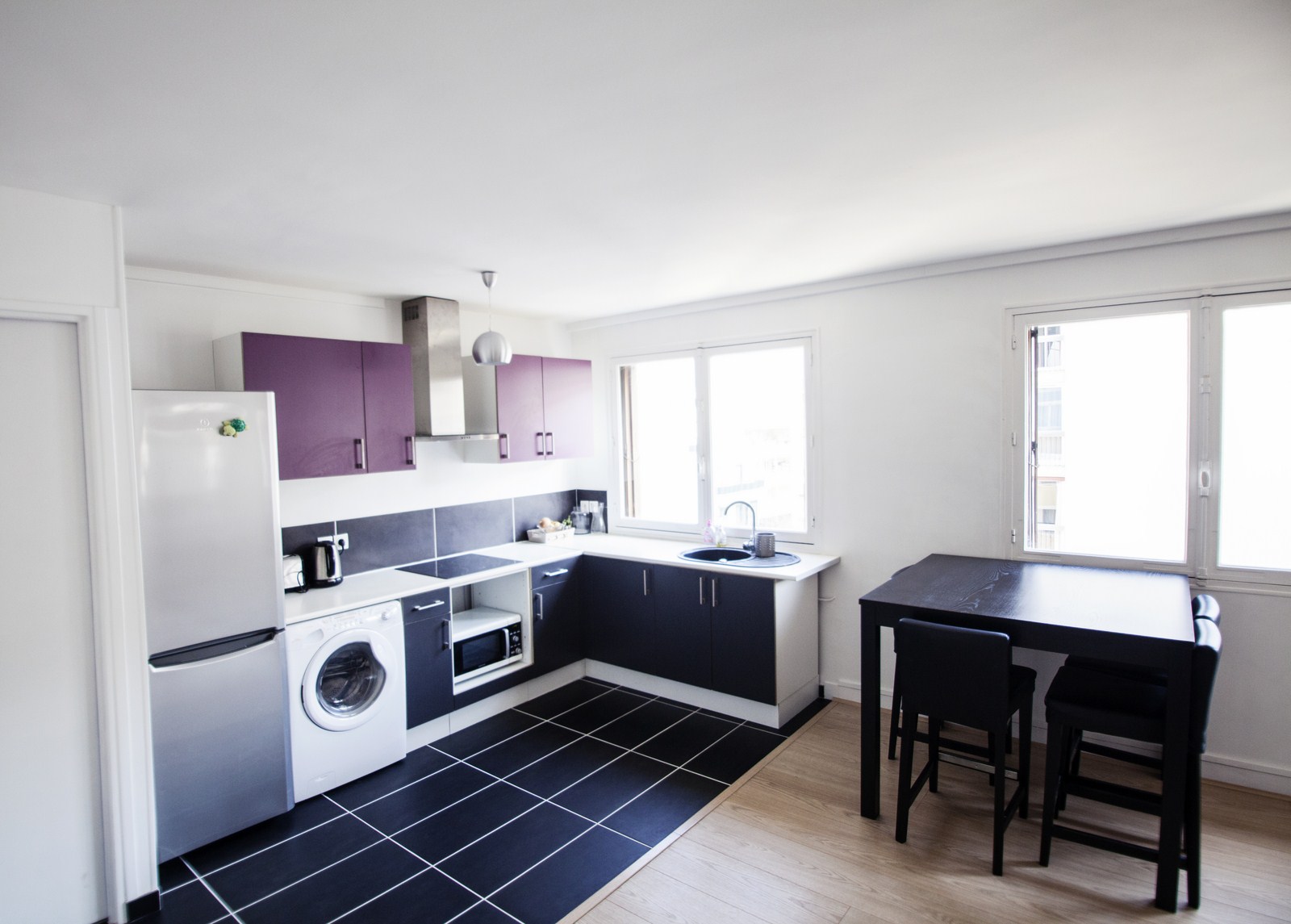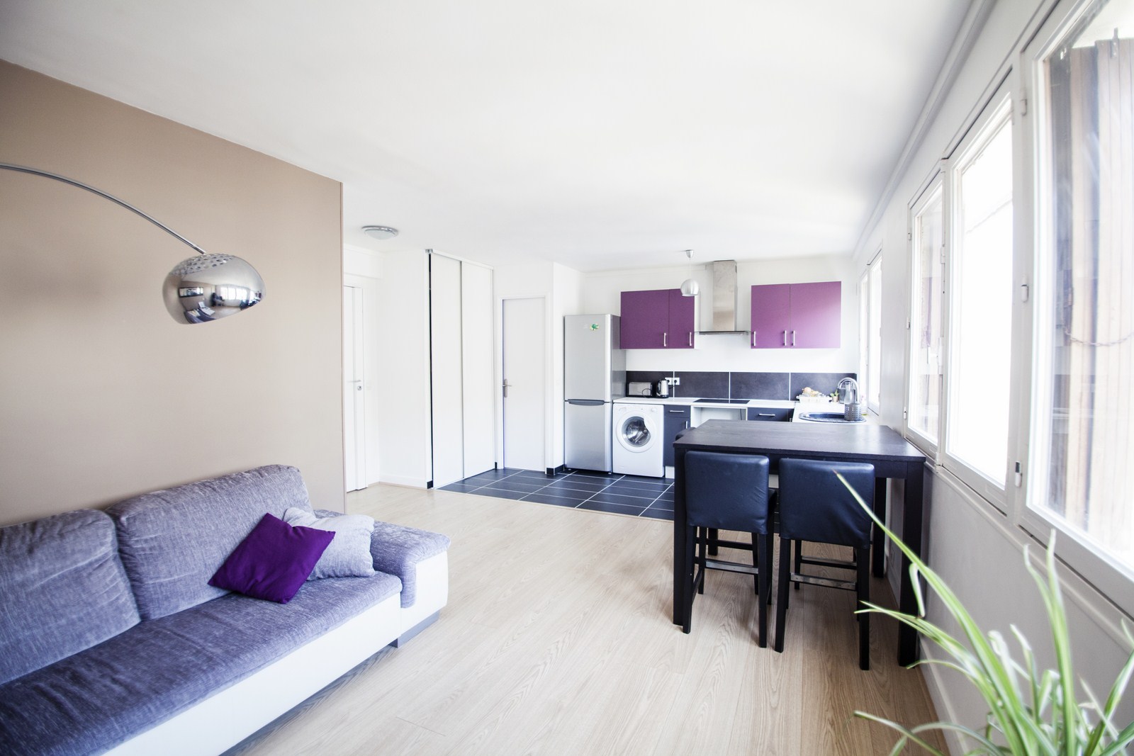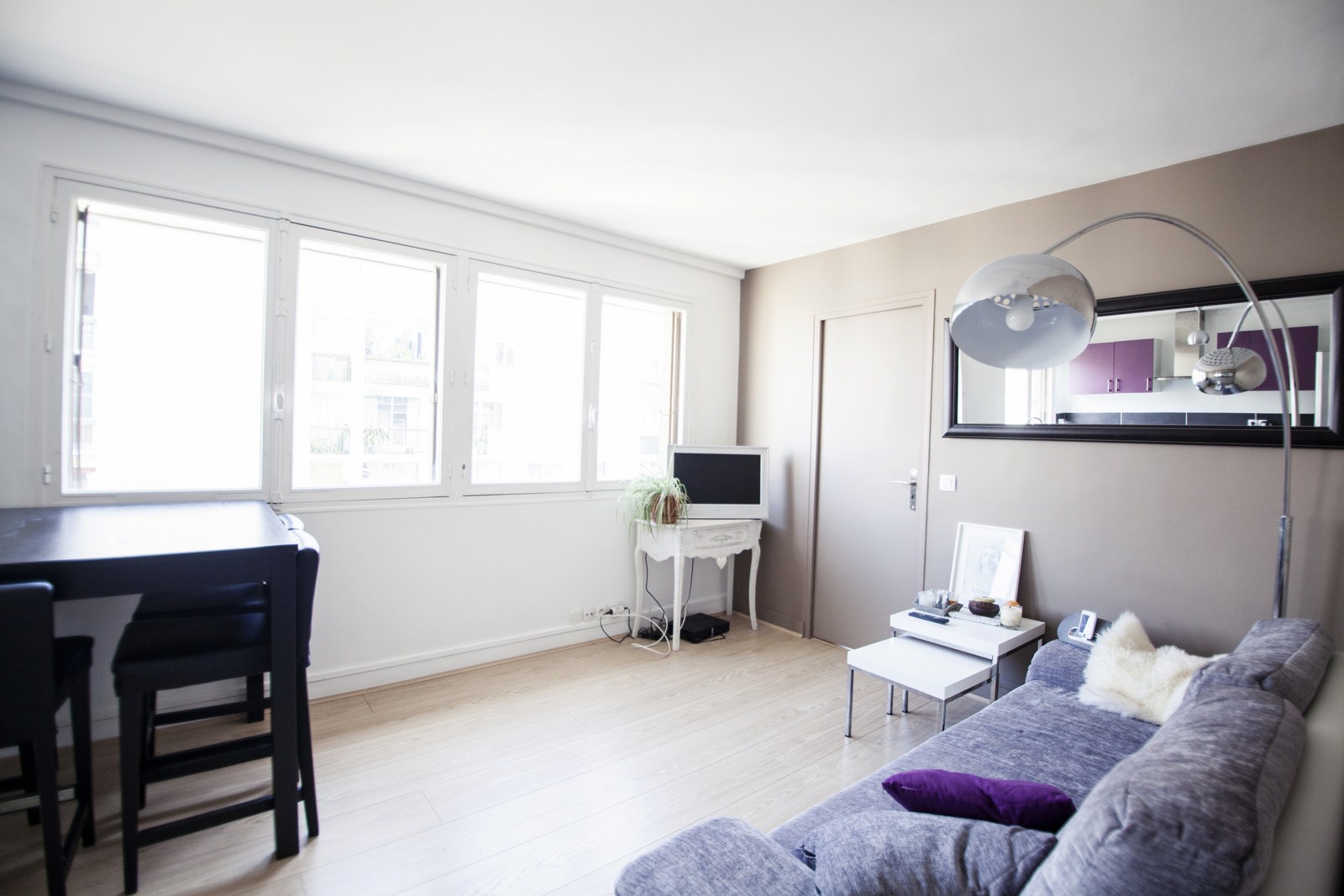 Paris 11, Métro Rue des Boulets, au 6ème et dernier étage d’un immeuble des années 1960, calme et très lumineux, appartement 2 pièces de 40 m2 en parfait état, beau séjour avec cuisine US de 27m2, une chambre avec rangements, salle-de-bains avec baignoire d’angle, wc séparés. L’appartement donne sur une impasse très calme. Chauffage et eau chaude collectifs. Une cave de 3 m2. Proche Nation.