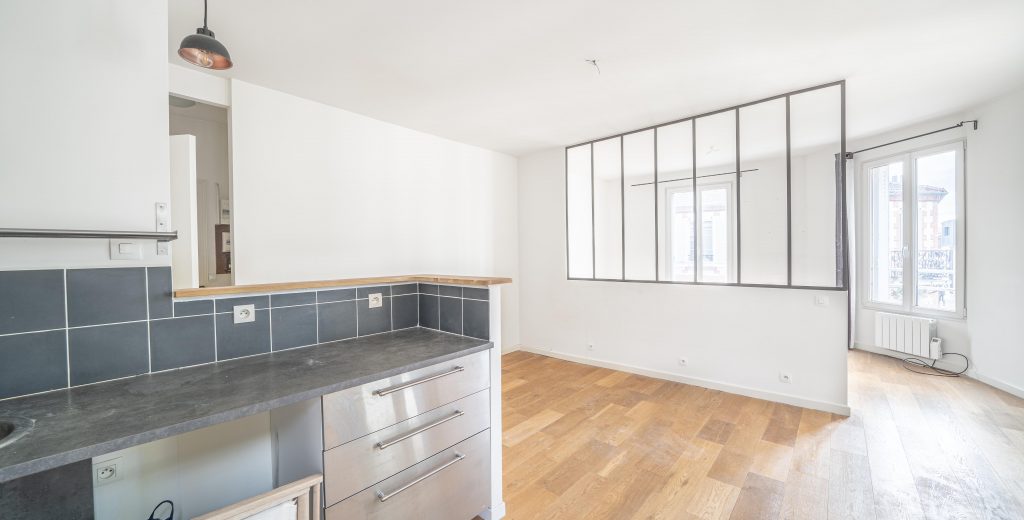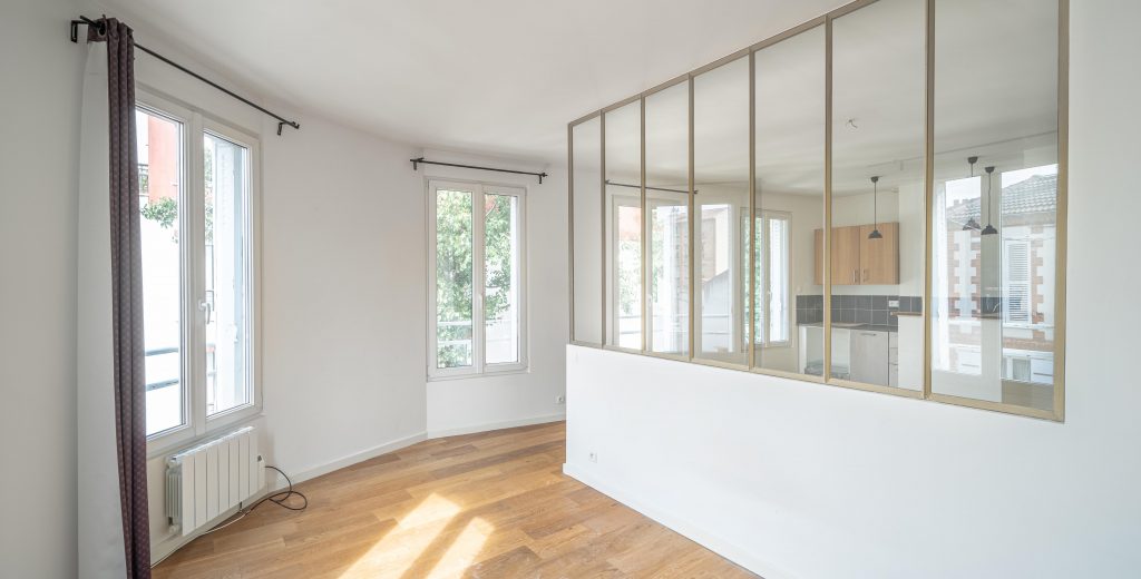 Métro Robespierre, superbe 2 pièces au 2ème et dernier étage ! Parfait état, appartement d’angle très lumineux, avec 5 fenêtres, entrée desservant un beau séjour sur parquet avec cuisine ouverte, chambre séparée par une verrière, une salle d’eau avec WC. Une cave. Faibles charges.