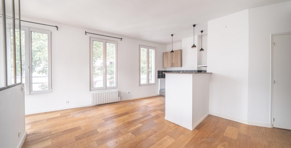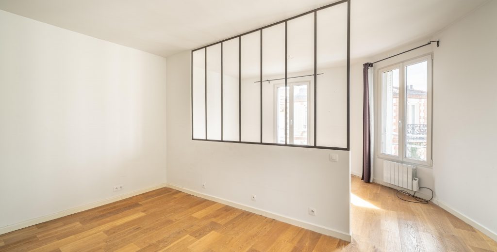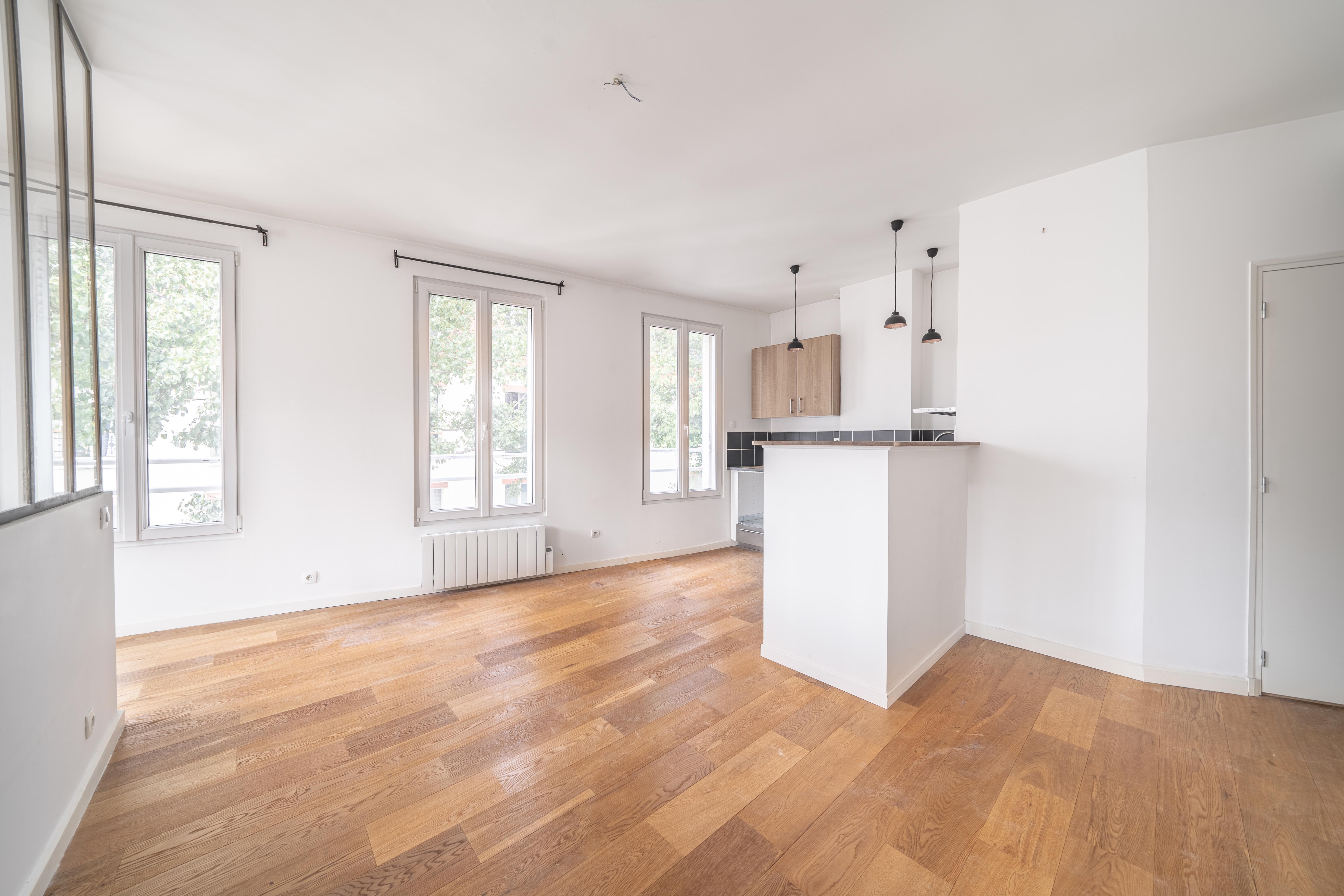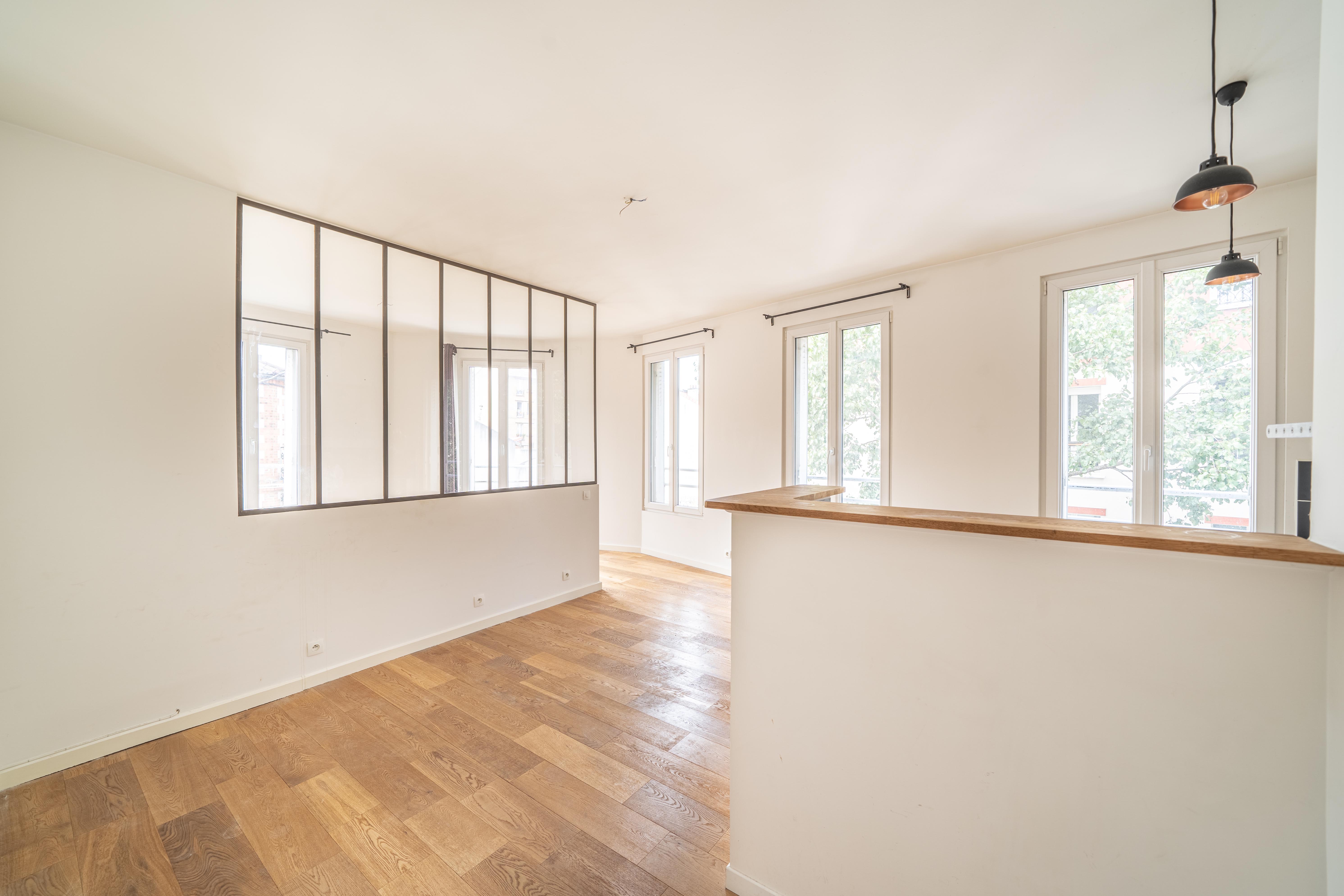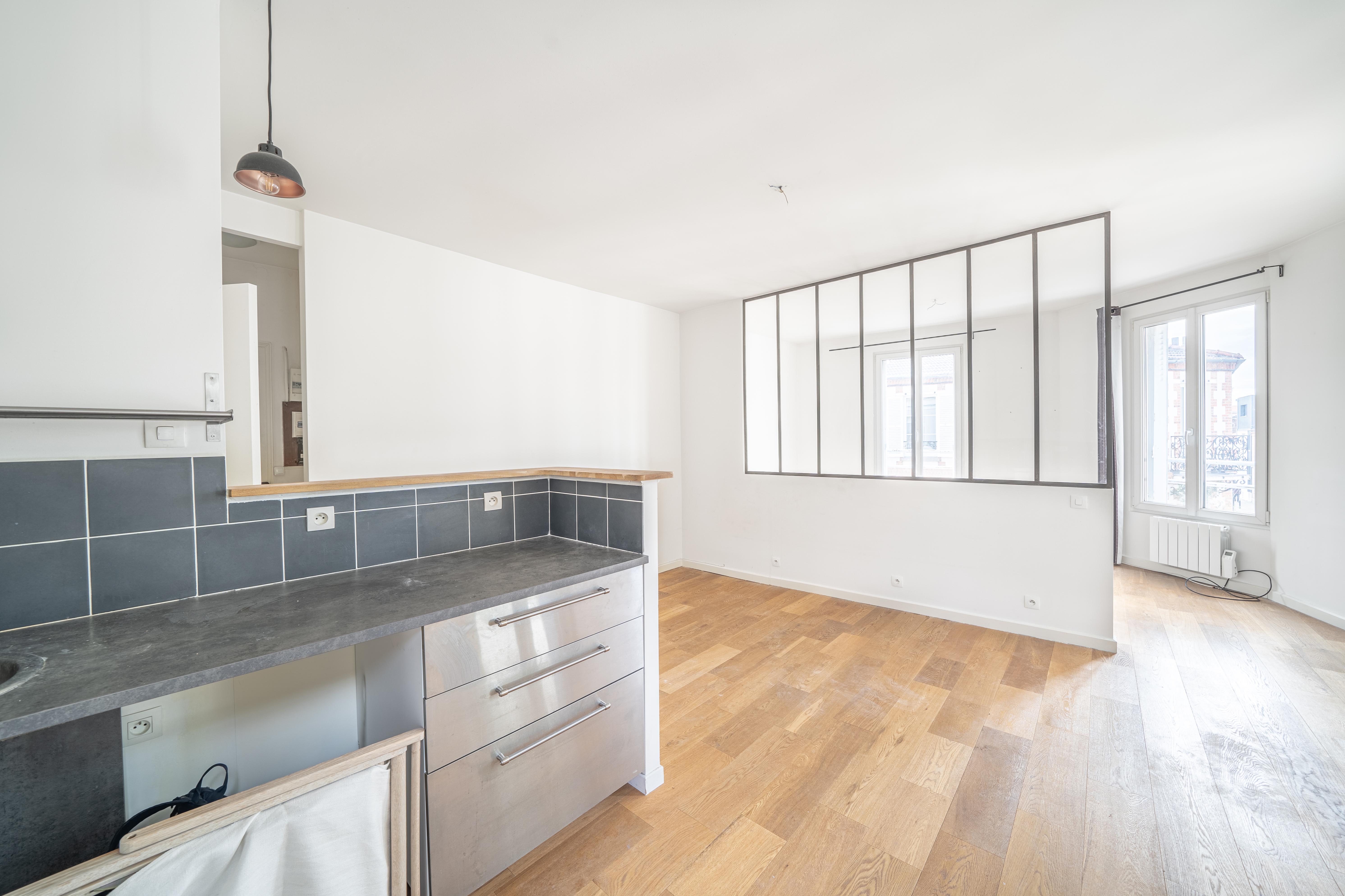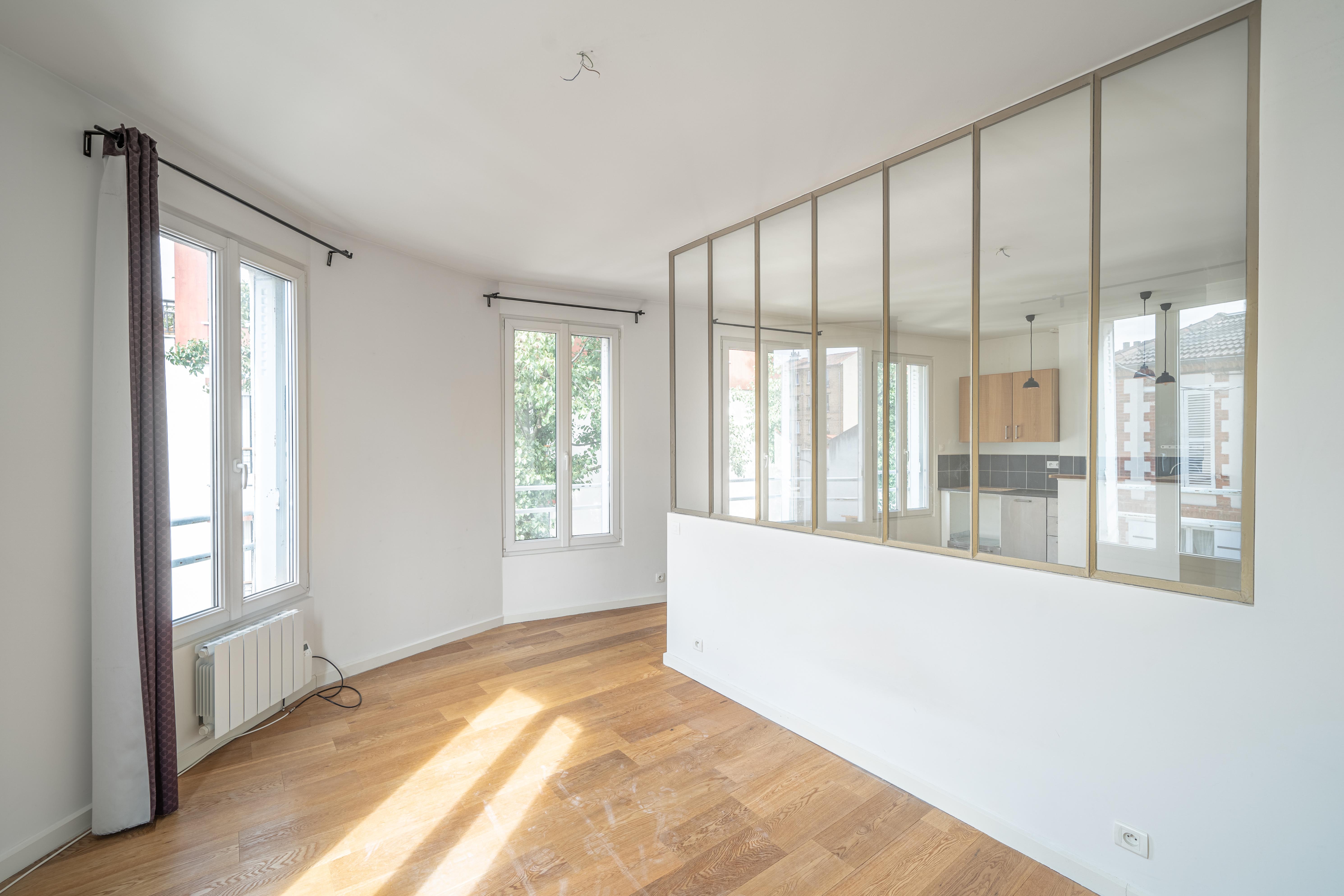 Métro Robespierre, superbe 2 pièces au 2ème et dernier étage ! Parfait état, appartement d’angle très lumineux, avec 5 fenêtres, entrée desservant un beau séjour sur parquet avec cuisine ouverte, chambre séparée par une verrière, une salle d’eau avec WC. Une cave. Faibles charges.