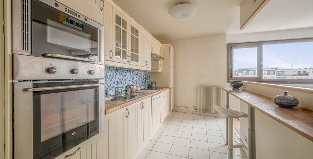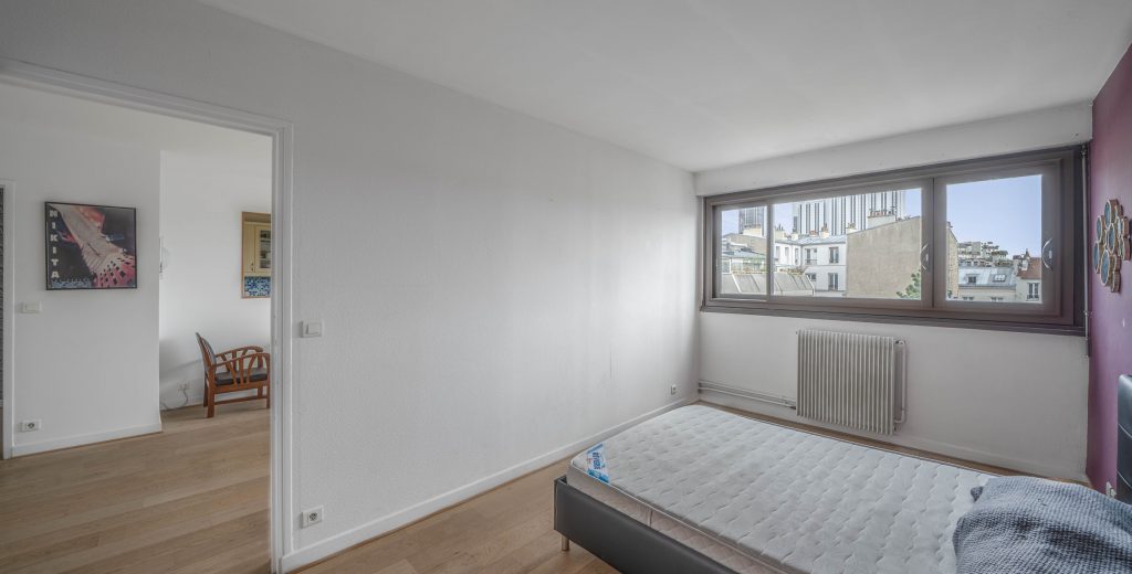 6ÈME ET DERNIER ÉTAGE AVEC ASCENSEUR AVEC VUE : Appartement 2P pièces de 53 m2, avec une grande pièce de vie de 30 m2 environ, cuisine américaine, une chambre, salle d’eau, et un WC indépendant.