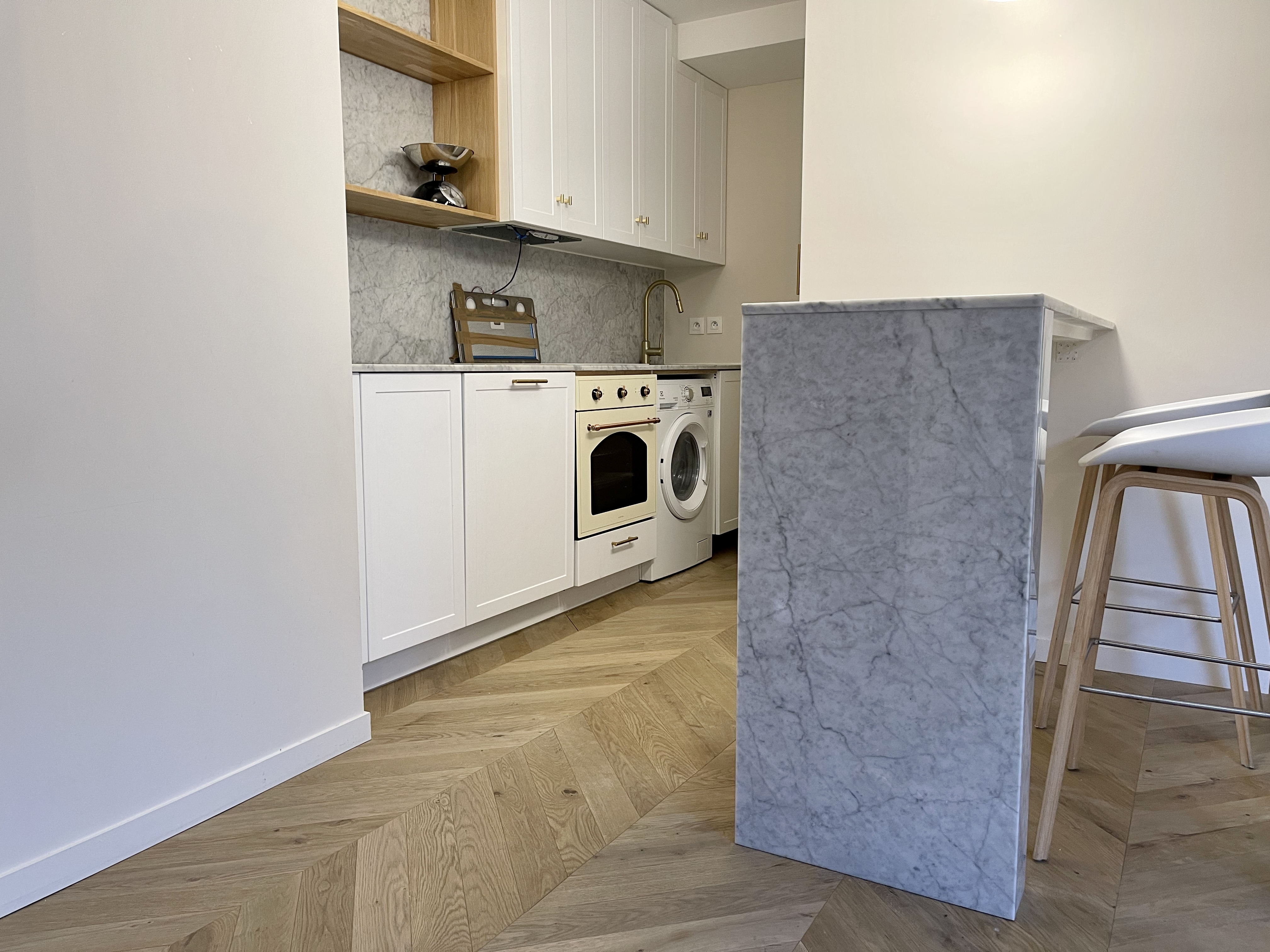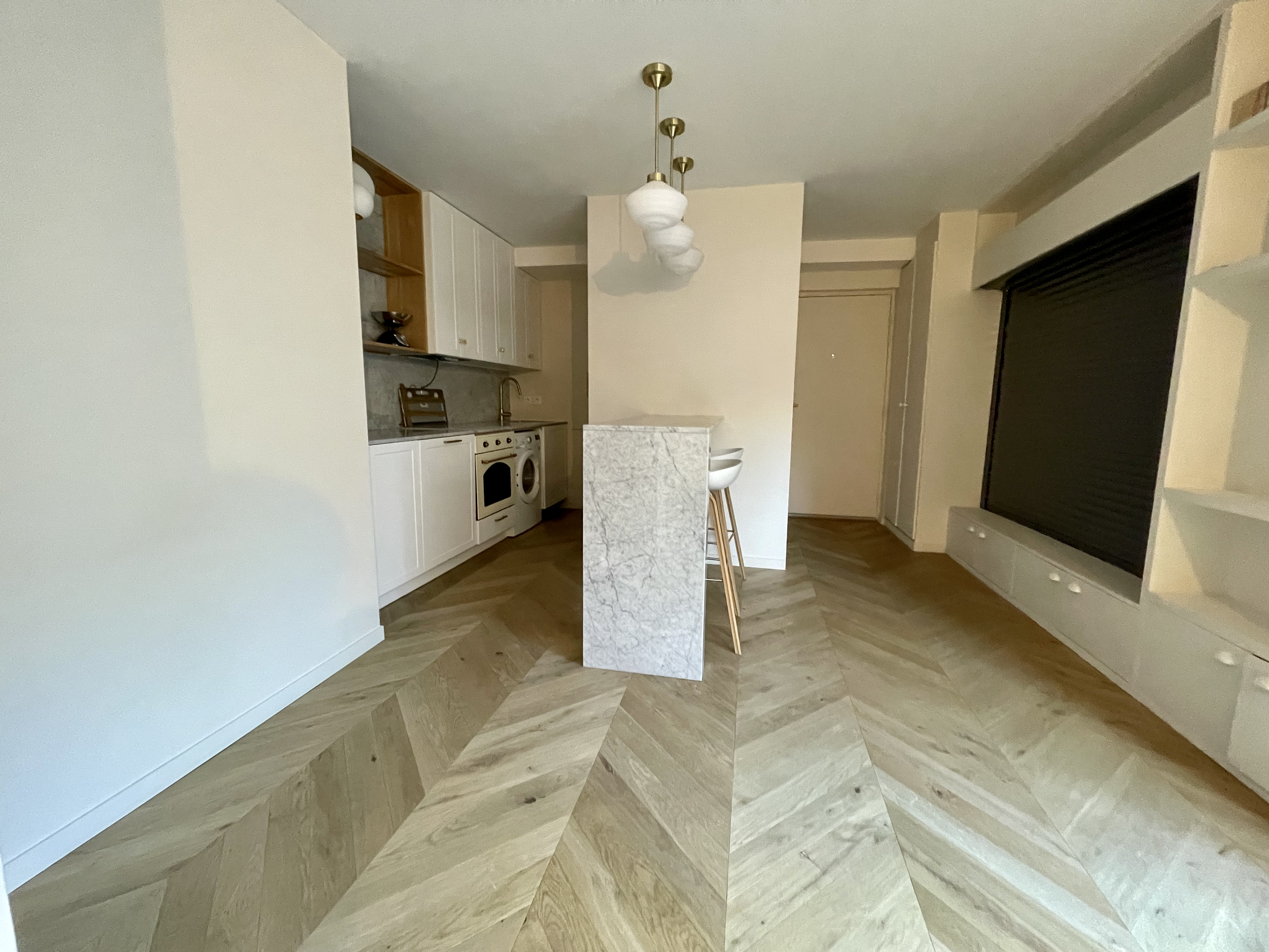 Un appartement 2 pièces récemment rénové par un architecte d’intérieur avec des matériaux de qualités. Il se situe au rez-de-chaussée d’un immeuble récent et bien entretenu, et se compose comme suit : une entrée avec placards, un séjour donnant sur une grande terrasse, cuisine moderne et équipée ouverte sur le séjour, une chambre avec dressing, une salle d’eau, un WC indépendant. Une cave. Possibilité de parking en sus du prix.