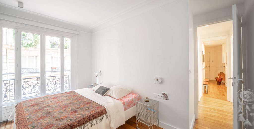 Superbe DUPLEX situé à proximité des commerces de la rue du Poteau, secteur Joffrin/Lamarck, au calme dans un bel immeuble en pierre de taille, se composant d’un double-séjour au 2ème étage, une cuisine ouverte entièrement équipée, un bureau, une chambre, salle-de-bains et WC, et à l’étage deux autres chambres, salles-de-bains et WC, buanderie, et dressing.