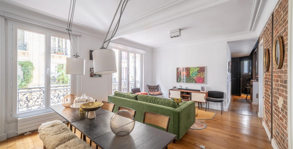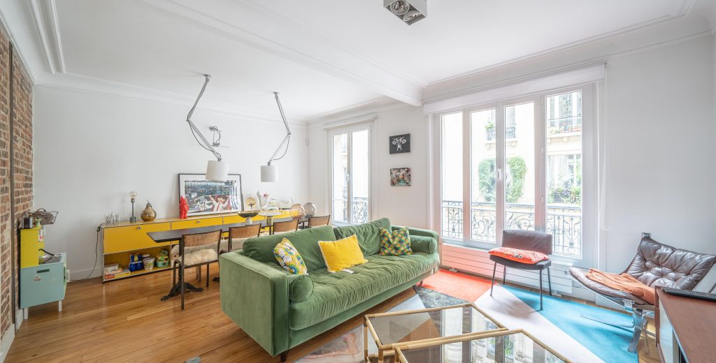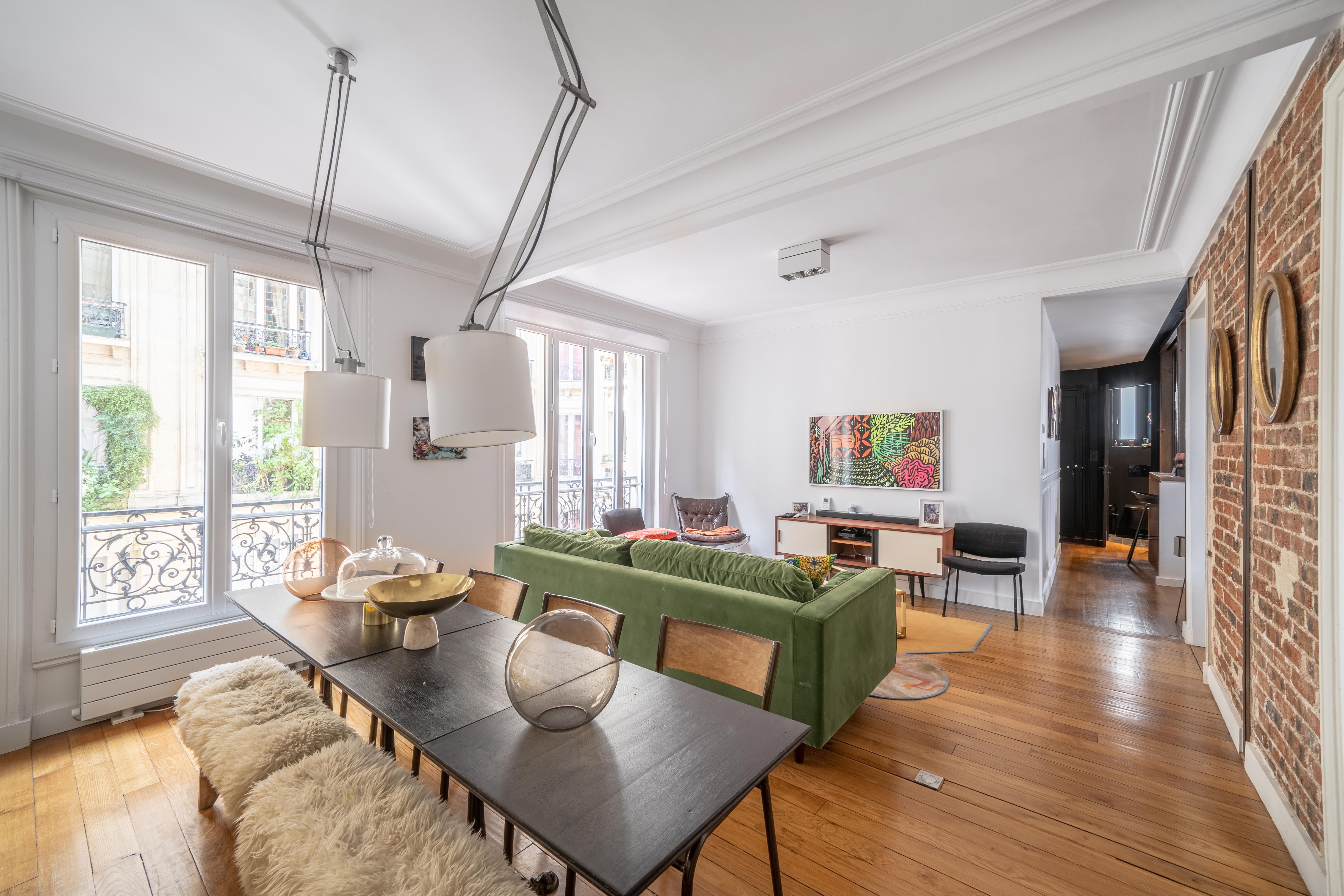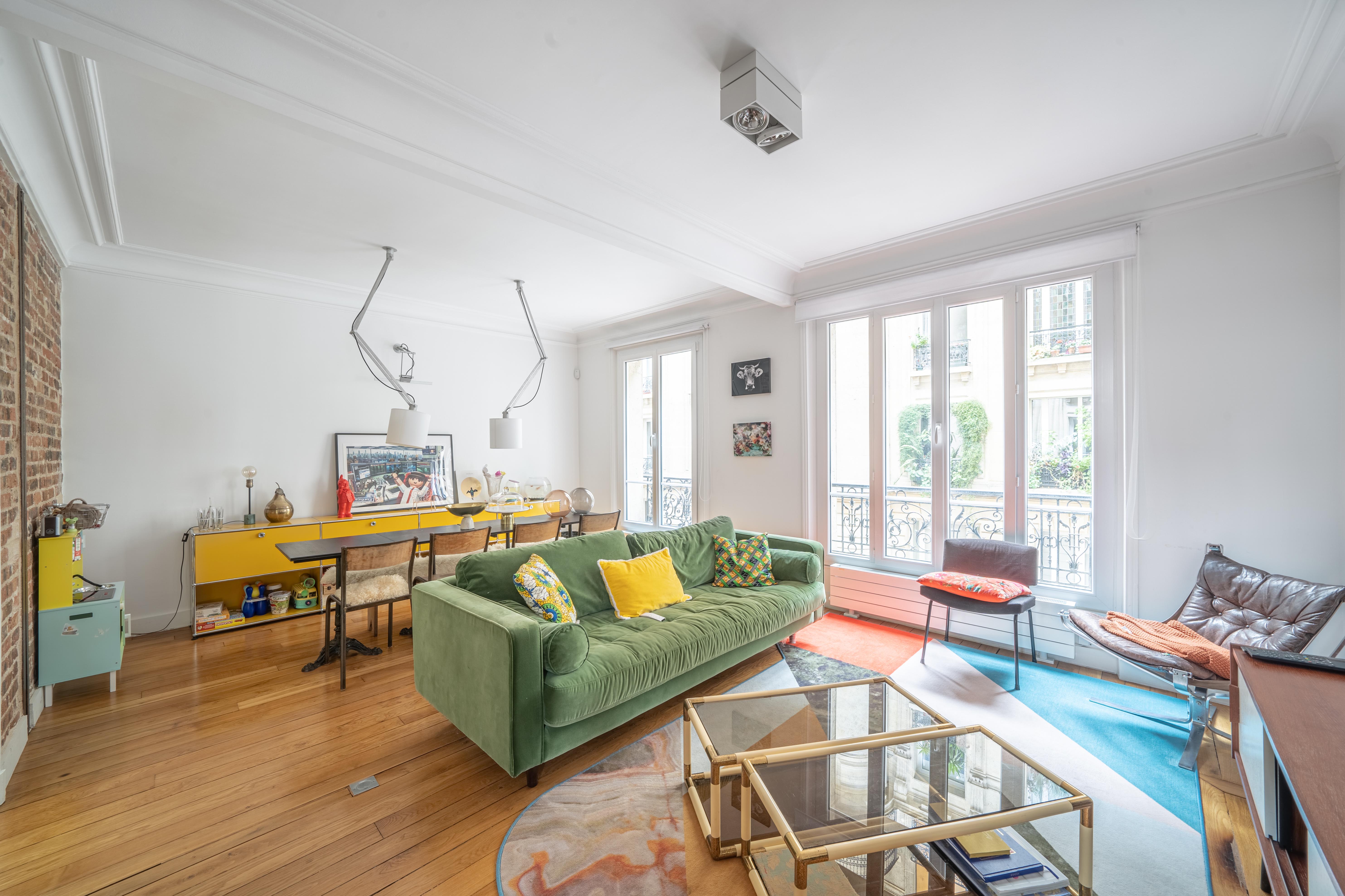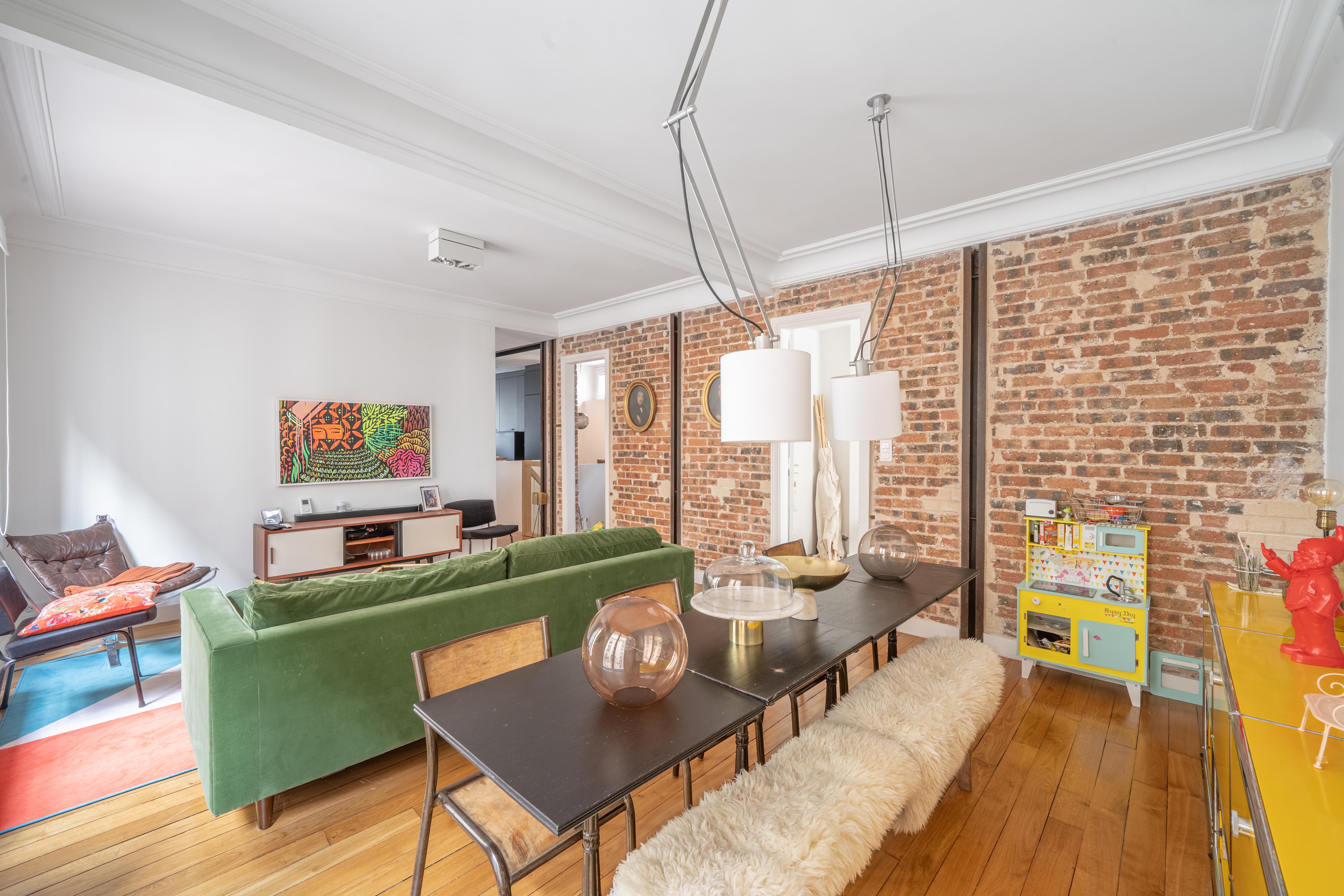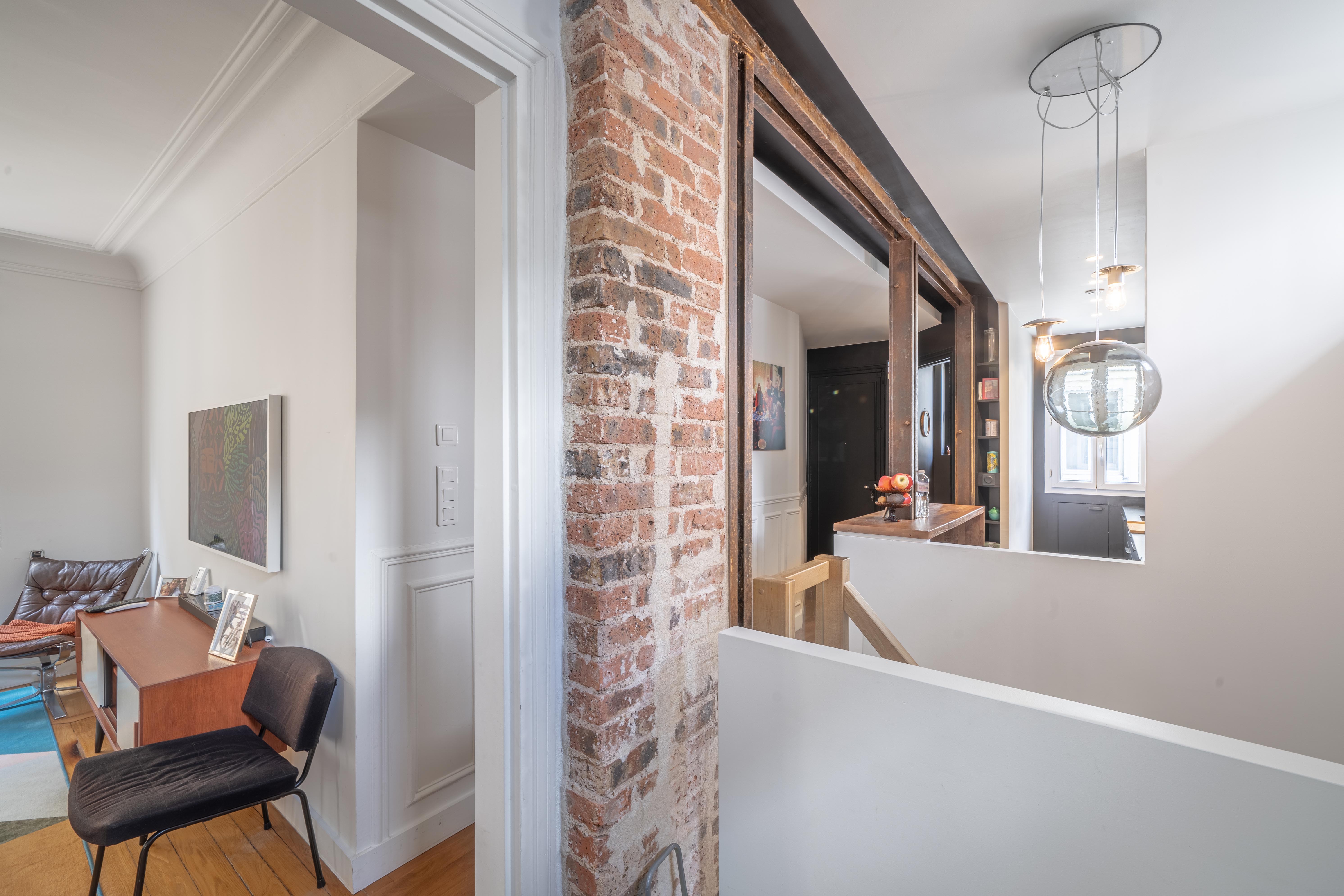 Superbe DUPLEX situé à proximité des commerces de la rue du Poteau, secteur Joffrin/Lamarck, au calme dans un bel immeuble en pierre de taille, se composant d’un double-séjour au 2ème étage, une cuisine ouverte entièrement équipée, un bureau, une chambre, salle-de-bains et WC, et à l’étage deux autres chambres, salles-de-bains et WC, buanderie, et dressing.