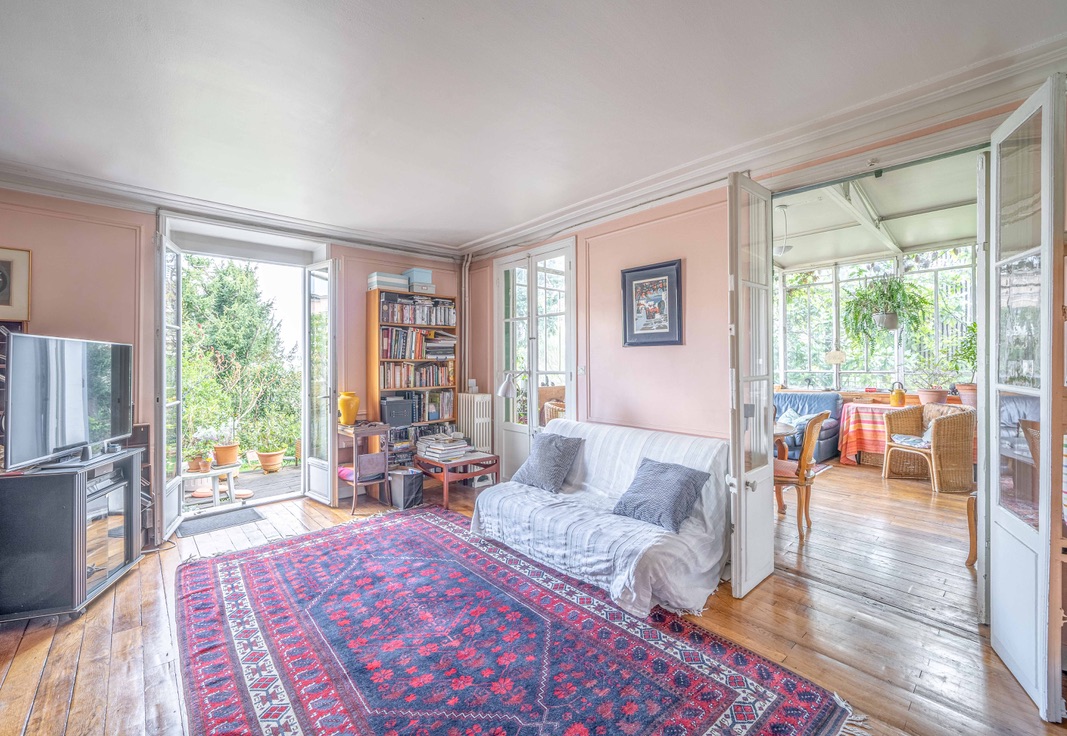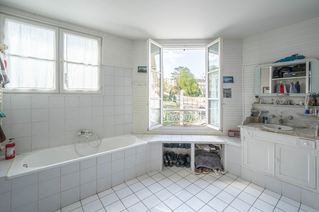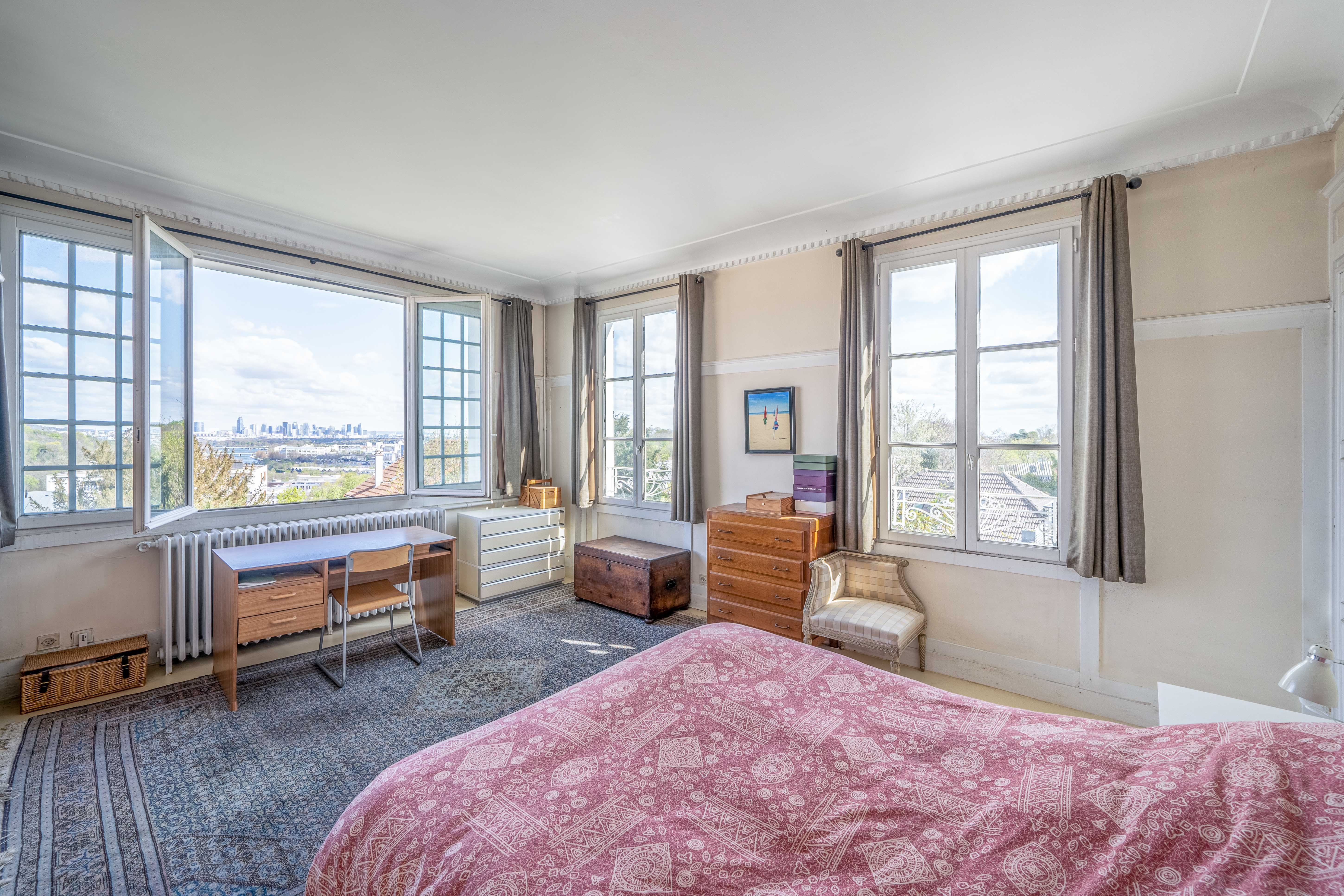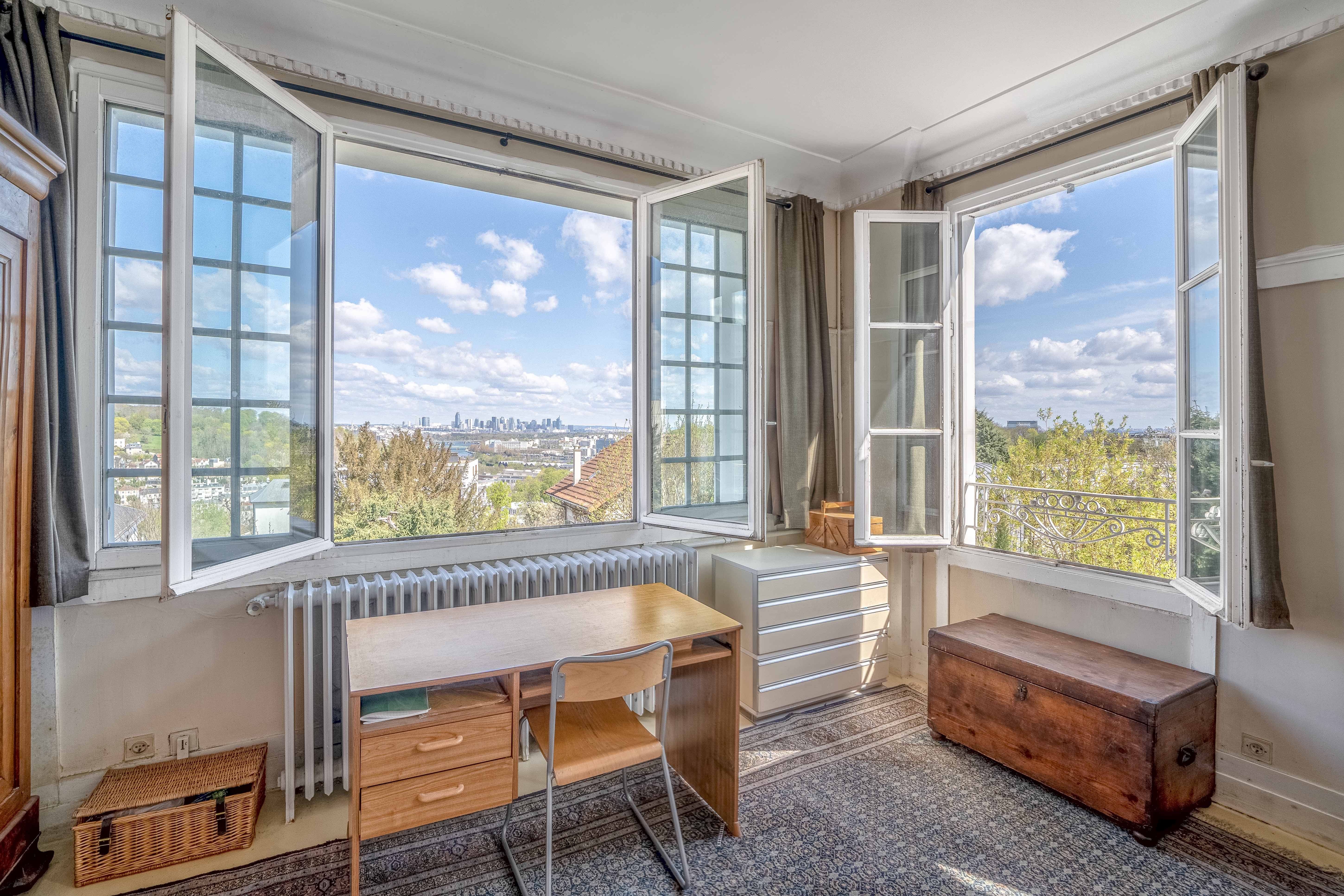 Avec une vue magnifique sur la Seine, La Défense, la Tour Eiffel, maison de 240 m2 habitable avec un beau jardin, datant de 1860, sur un terrain de 506 m2, avec entrée galerie ouvrant sur une véranda, un séjour et une salle-à-manger ouvrant sur une terrasse côté jardin, exposée OUEST, cuisine et buanderie, 5 chambres en étage, 2 salle-de-bains et 3 wc. Sous-sol total. Cette maison pleine de charme est située à quelques mètres de la gare “Sèvres-Rive Gauche”, et à proximité du Domaine national de Saint-Cloud.
