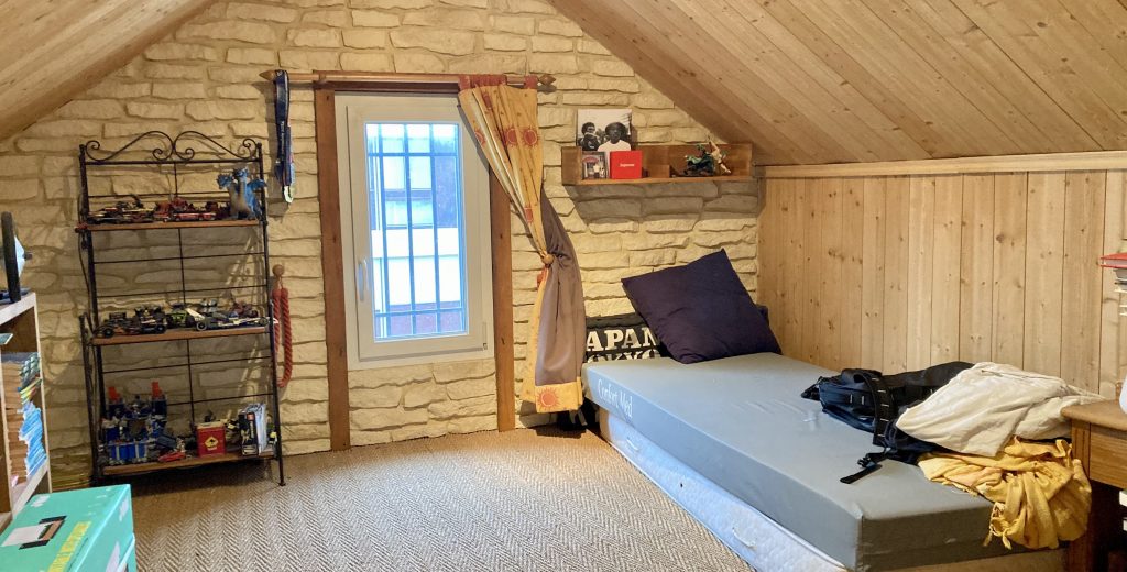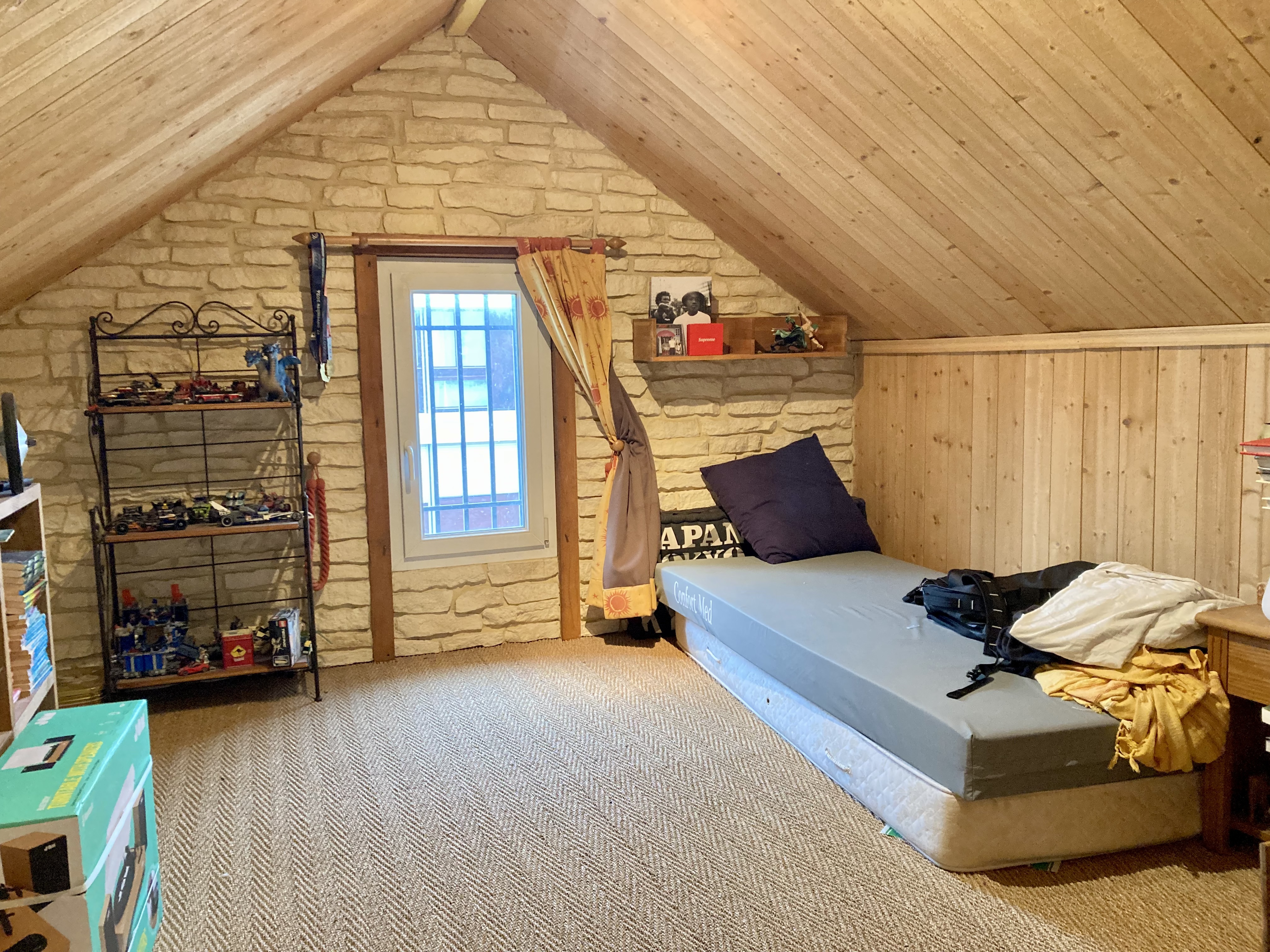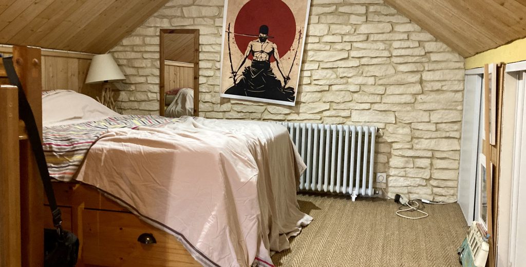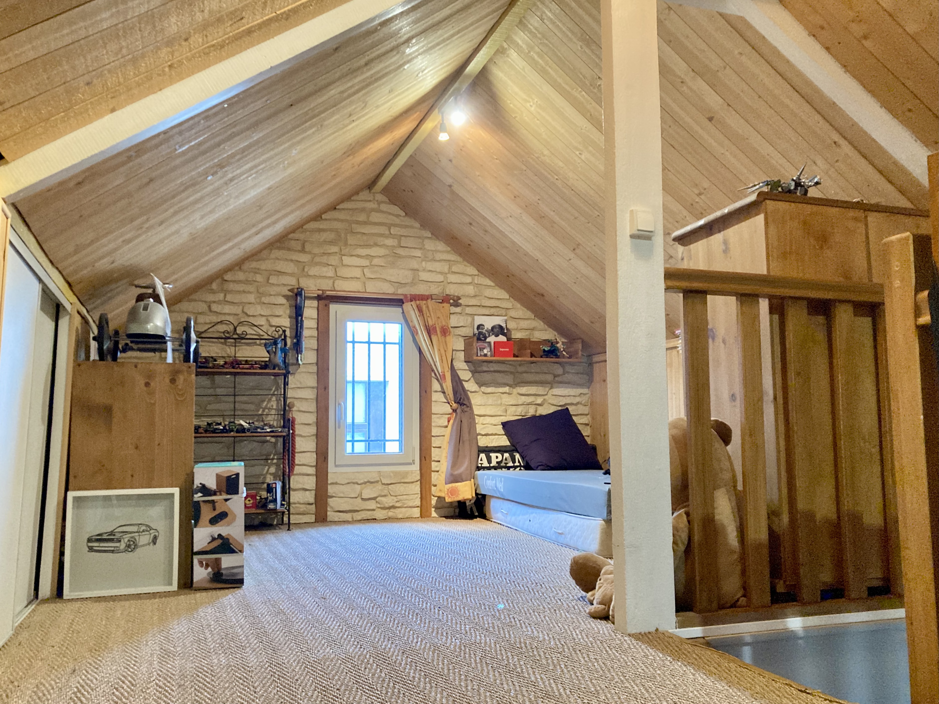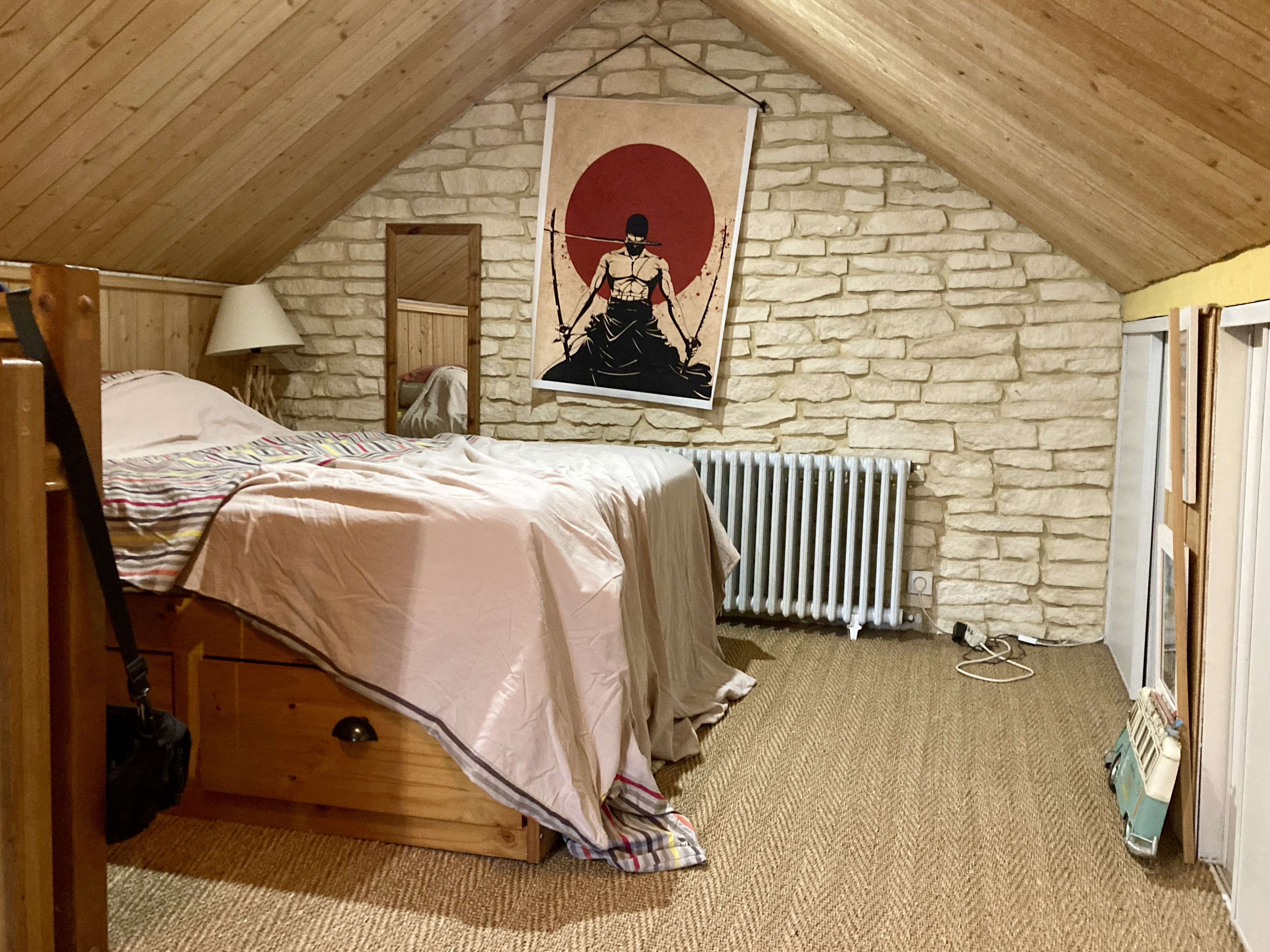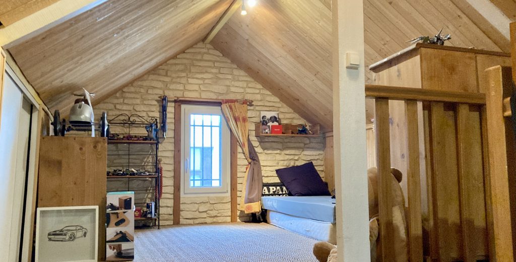 Elle se compose d’une entrée, d’une cuisine équipée (possibilité d’ouvrir), et d’un grand double séjour au rez-de-chaussée, d’une salle de bain avec une douche, une baignoire et WC, d’une chambre parentale, d’une seconde chambre et d’un dressing au première étage, et d’une grande chambre sous les combles au dernier étage.